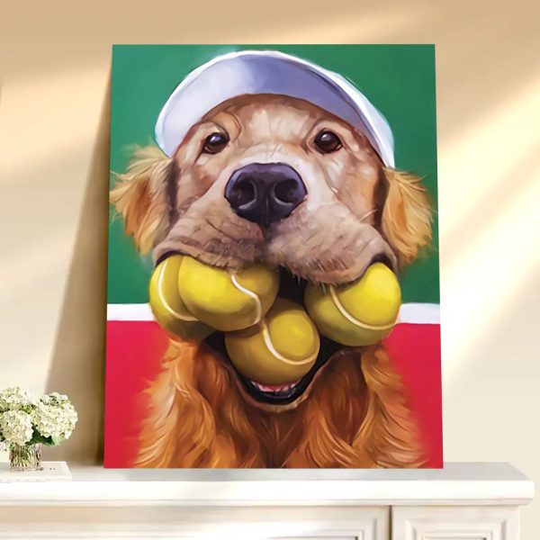 Diamond Painting: Goldener Retriever mit Baseballkappe und voller Maul von Bällen