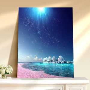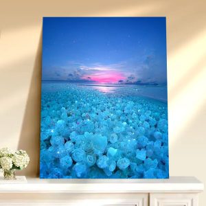 5D DIY Diamantmalerei, Leuchtendes Meer mit Riffen und Vollmond