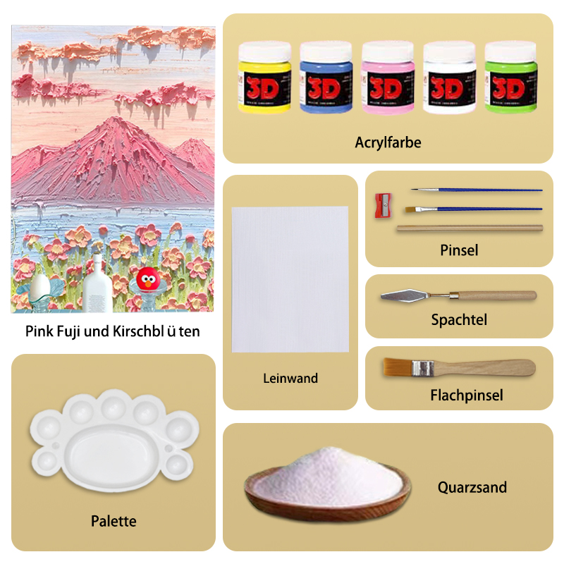 DIY-Relief-Texturmalerei-Set 3D- Pink Fuji und Kirschblüten