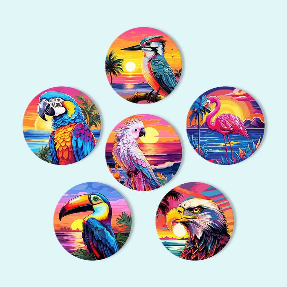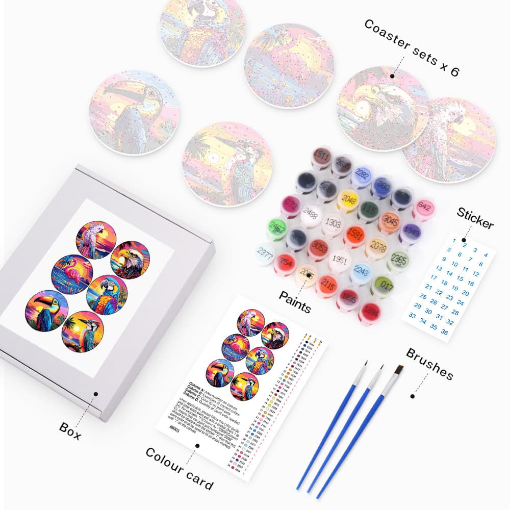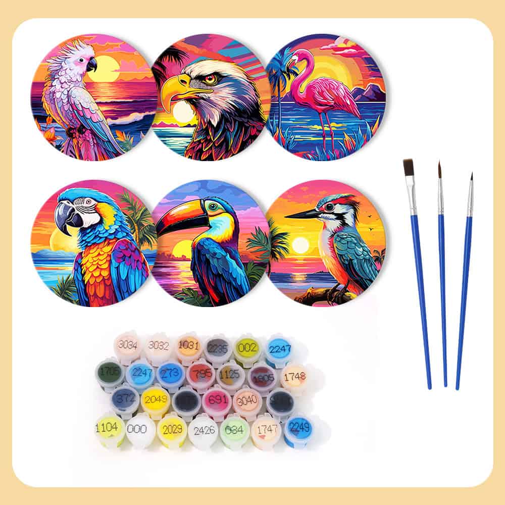 PVC-Untersetzer Malen nach Zahlen 6er Set-Bunte Vögel“